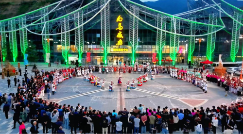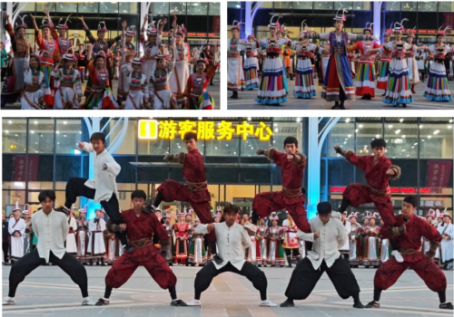 此外,前广场还有锅庄舞队带来热闹的火圈舞热场,游客可以随时加入,跟着节奏舞动;演员们还会准备抖音热舞互动,一起嗨翻现场,解锁假期欢乐新姿势!